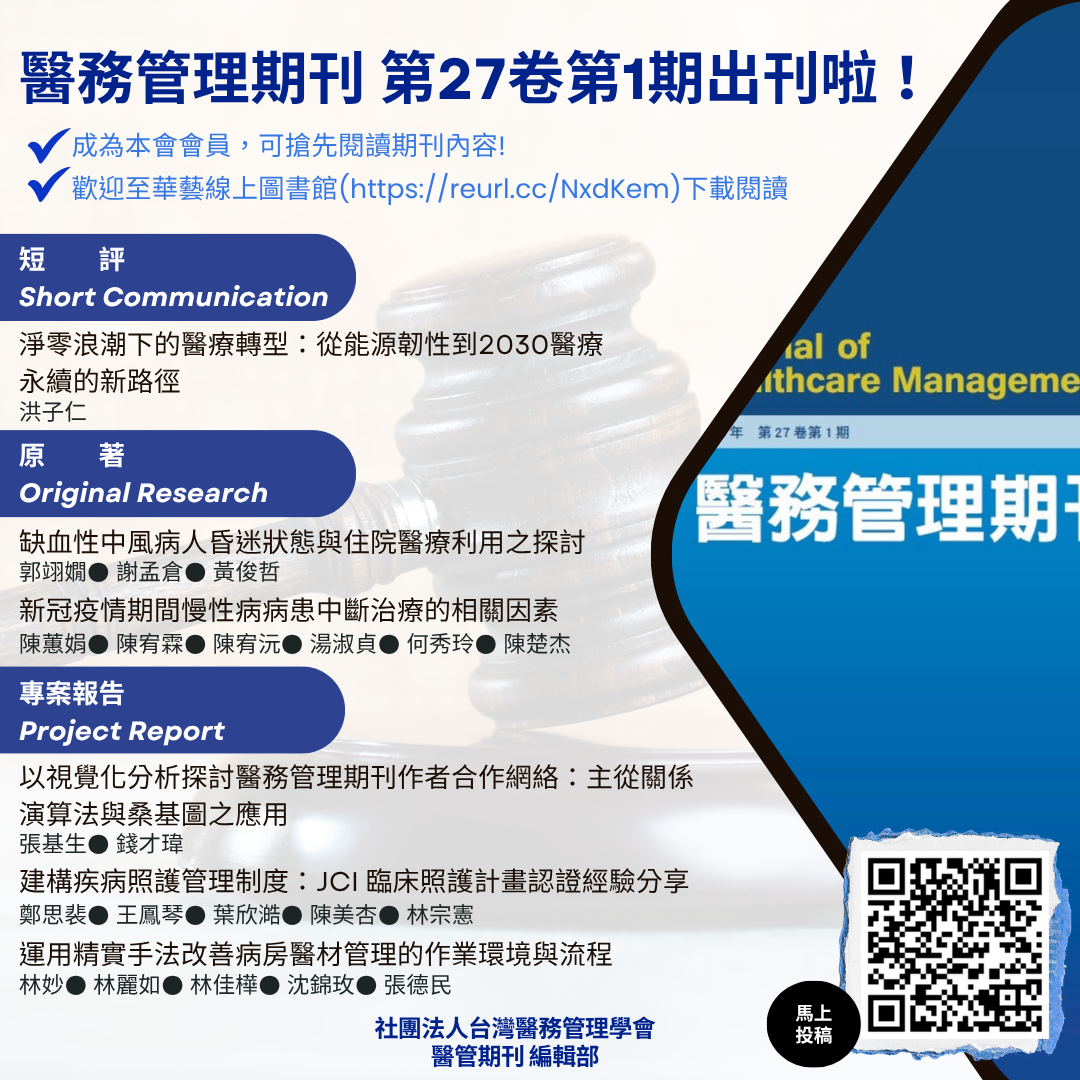 【醫務管理期刊】第27卷第1期 出刊啦 ! !